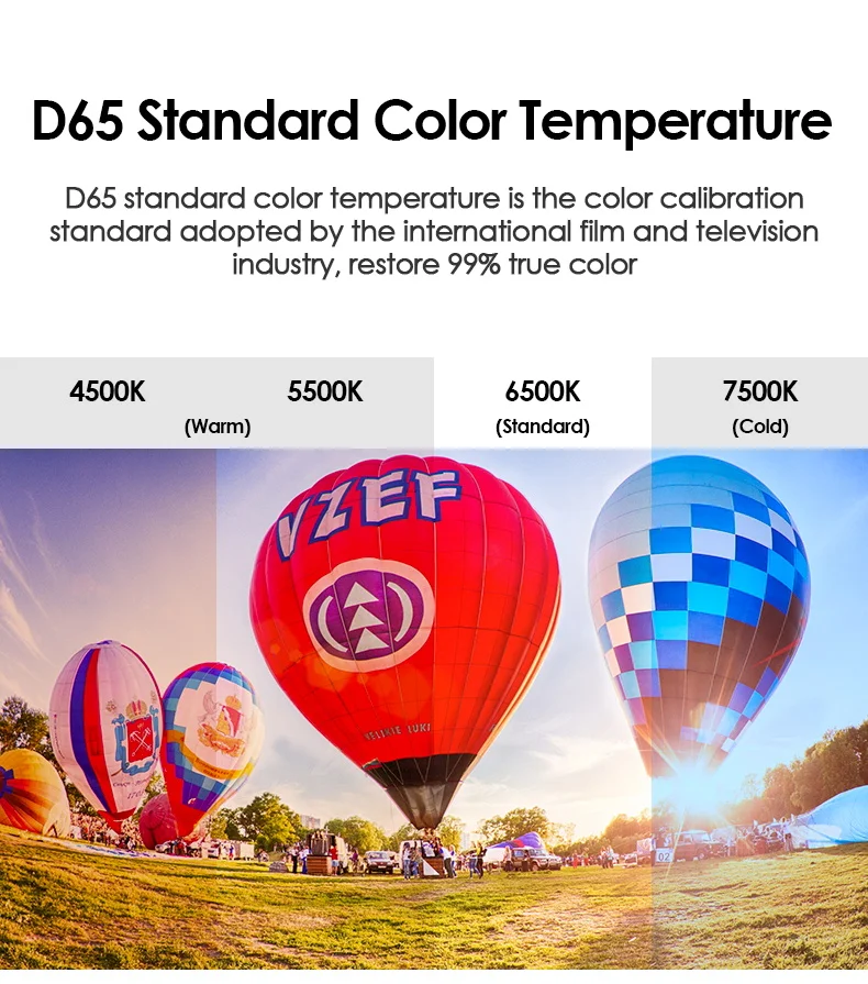 *D65 standard color temperature is the color calibration standard adopted by the international film and television industry,restore 99% true color.