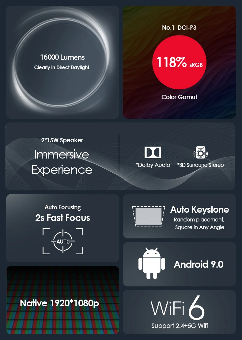 ❤ Horizontal+Vertical 6D Digital Keystone Correction ±100º /±15º Vertical Optional.