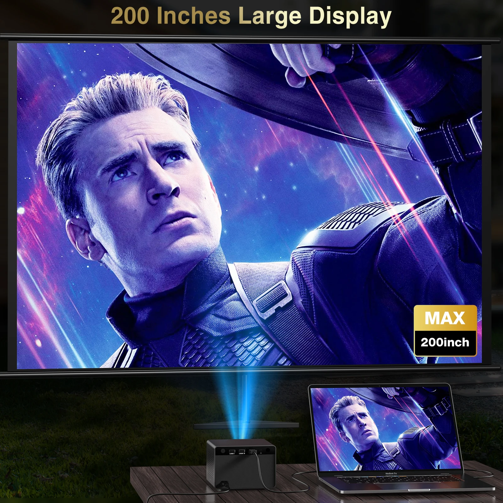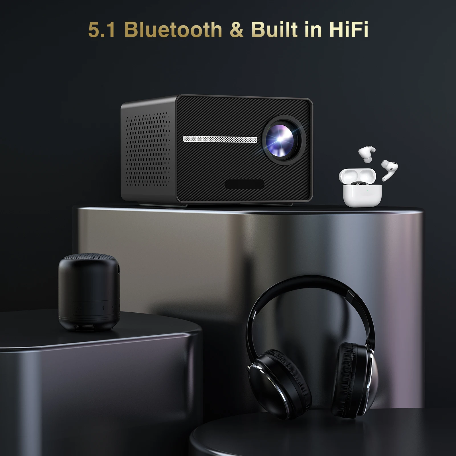 HAPPRUN Electric Focus Mini 1080P Bluetooth Projector, 200″ Outdoor Movie Support, Compatible with Smartphone/HDMI/USB/PS5