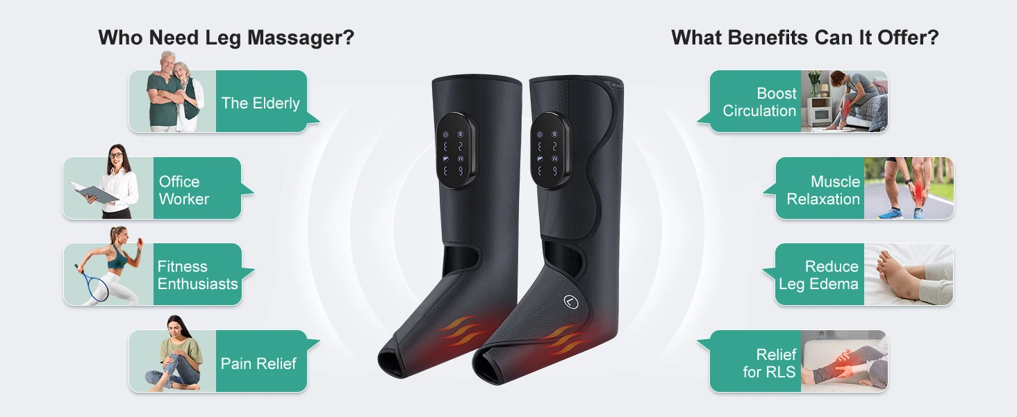 Medcursor Foot Air Pressure Leg Massager with Heat Promotes Blood Circulation Muscle Relaxation Portable Massager Boots for Home